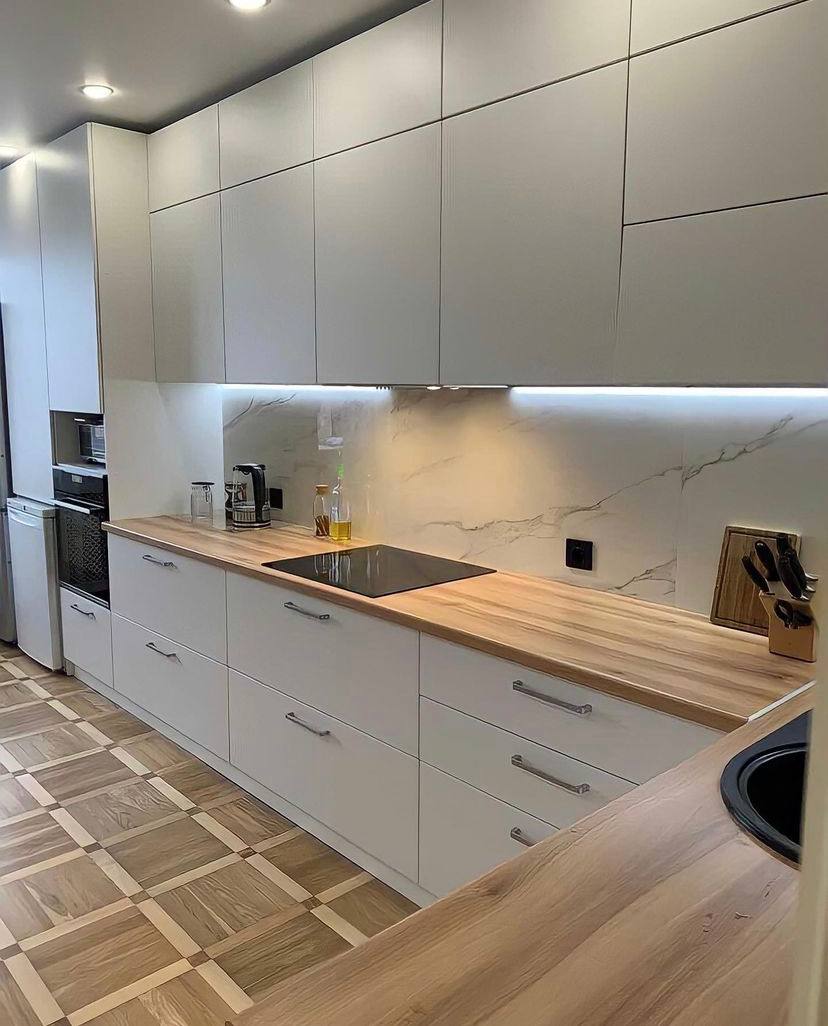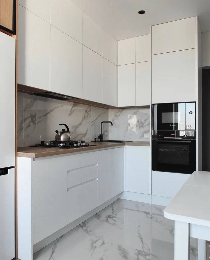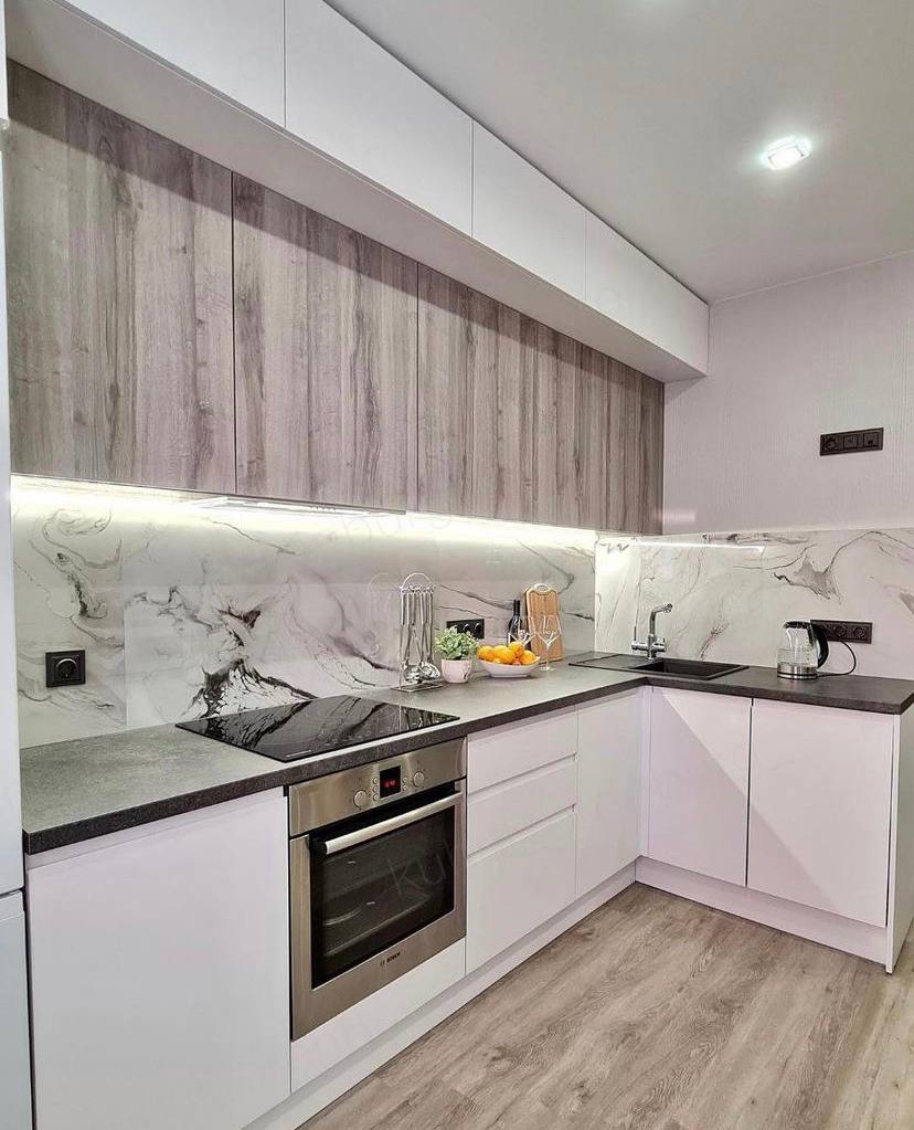 У нас фабрика, поэтому цены ниже на 20-40%. Гарантия на кухню 1 год